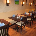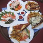 Before we even ate one morsel on our first visit, (that’s right—more to come,) we already admired two things about this eatery. One is that there are three different choices of dining areas–inside, which is classy-looking; on the patio, with or without umbrellas; or at the poolside bar area. They’re all winners.