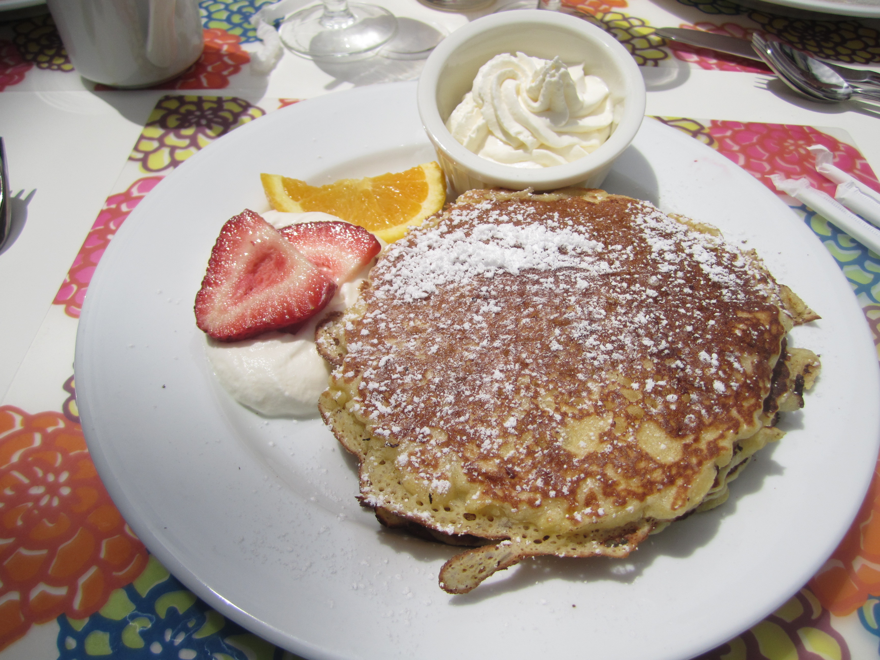 When I saw one of the guy’s French toast with a sausage patty, I did get a tad jealous for a second, but when I tasted my chocolate chip pancakes, with the absolute best homemade whipped cream ever(!,) I knew I had made the right decision. OMG! Seriously, I order them all the time, everywhere I go, and these one at Oso were the most delicious ones, by far. I ate the whole plateful, which never happens.