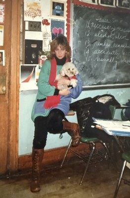 ~ Another thing I have in common with the play English is that I was a teacher once upon a time. I come from a family of them. My mother was an English teacher and my father was the Chairman of the Speech Department in a famous New York High School that he actually had attended as a student! I guess he loved that place because he was also the President of the Alumni Association. And just about everyone in my fam is a published writer, as well. [Photo at the top of this page is of Karen Salkin in one of her family’s classes back in the day. Photo by May Rose Salkin.]