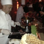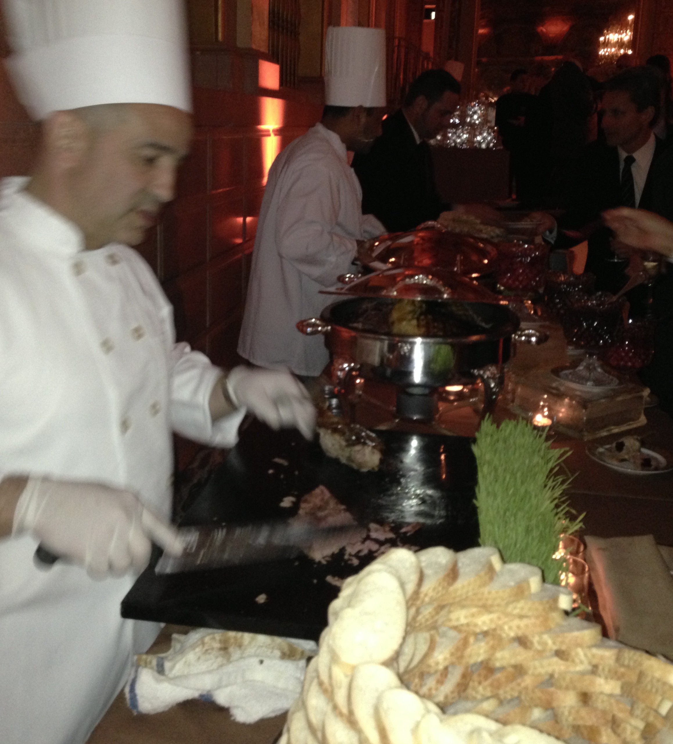 We began in my favorite part of the hotel, the Palm Court, where afternoon tea is usually served. We continued moving on to the next area, where the body of the cocktail party was set-up. There were half a dozen food stations, all from different restaurants. They featured everything from hand carved turkey sandwiches with homemade cranberry sauce to the thinnest pizza ever to ceviche and sushi. I really can’t imagine how anyone could eat a dinner after all that. I didn’t eat again until noon the next day.