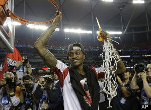 Louisville, led by coach Rick Pitino, was the absolute top seed of all sixty-eight teams, so, since I’m such a fan of fairness, it was really only fair for them to become the official champions. They were also probably the only team of whom most of the country knows, due to the gruesome injury last week-end of one of their starters, Kevin Ware, who has handled himself amazingly well in this past week since breaking his leg. (In case you haven’t heard about it, which would shock me, the bone was sticking straight out of his leg!) I have a feeling it was emotional for everyone concerned, including the viewers, to see him at the game and reveling in his teamates’ comeback from twelve points down!
