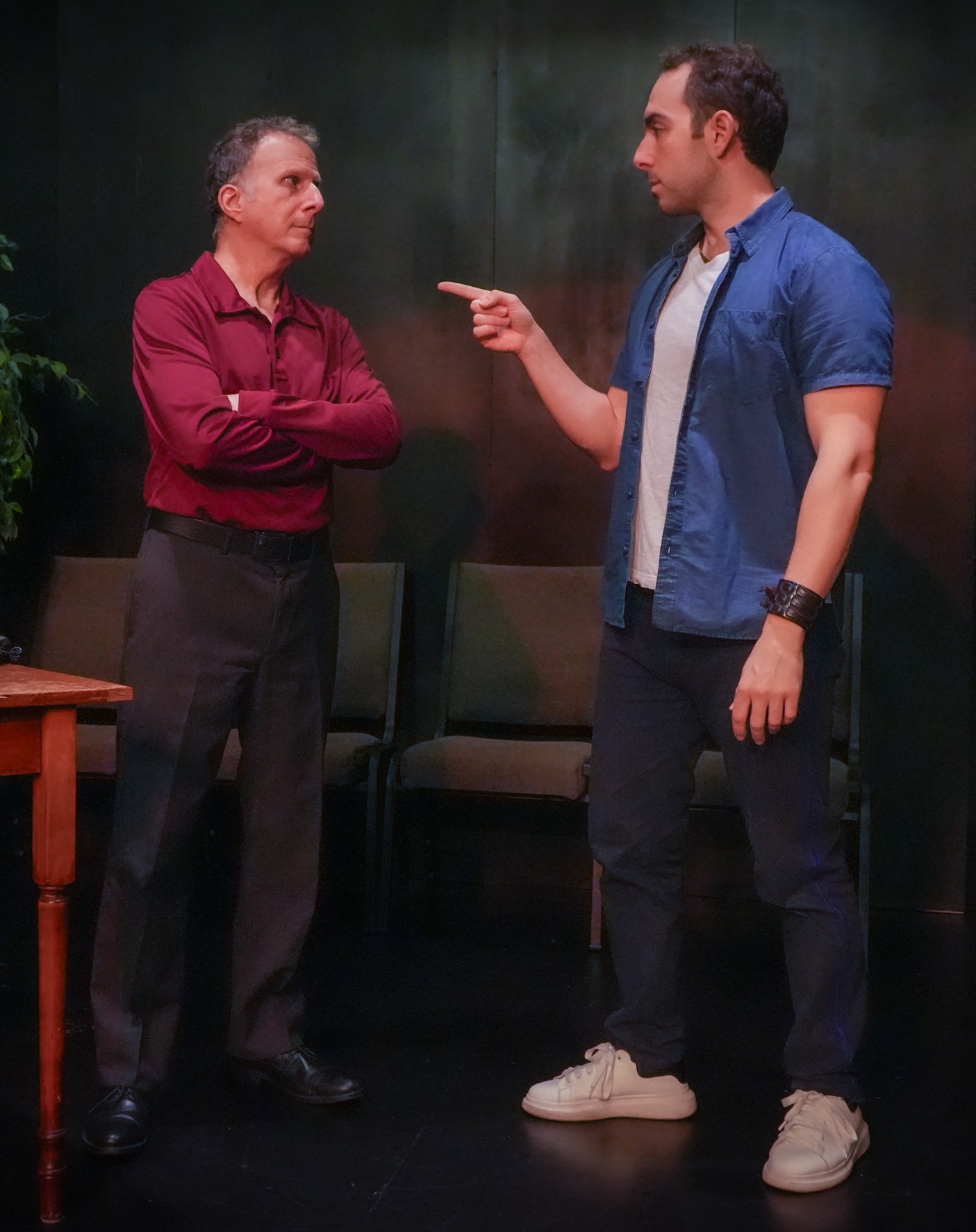 As far as the actual production goes, the entire seven-person cast is good. Nina2 especially liked Jerry Weil, who plays the Professor and is a doppelgänger for Paul Reiser, while my fave was Sammie Wayne IV, as the arbiter of the controversy, who’s a late arrival to the story. He’s the most natural, and reminded me of the real-life judge who amusedly dismissed me from Jury Duty some years ago, adding that I should say hello to my mother, boyfriend, and all my friends for him! (No lie.)