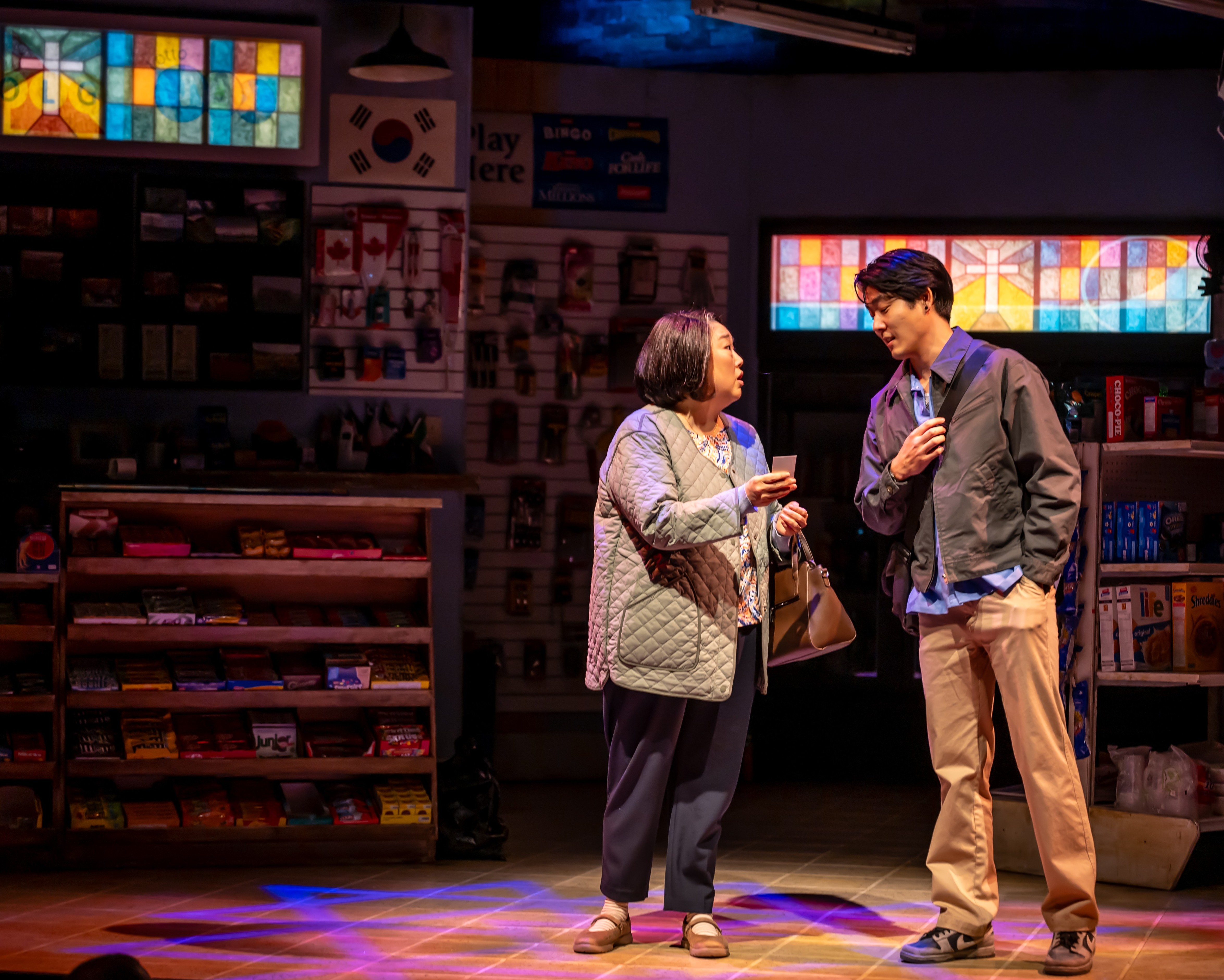So, in case you join me in my nescience, let me tell you the premise of the play. A Korean immigrant couple, the Kims, own a convenience store in Toronto. And they have two grown children—a son and daughter. And we’re seeing one significant day in their basic lives. In that brief time, they take us on quite the journey. Not only is it a laugh riot, but it gets pretty emotional in a few spots. And all of that in only seventy-five minutes!!! (The program says it’s ninety minutes, but I clocked it at seventy-five.)