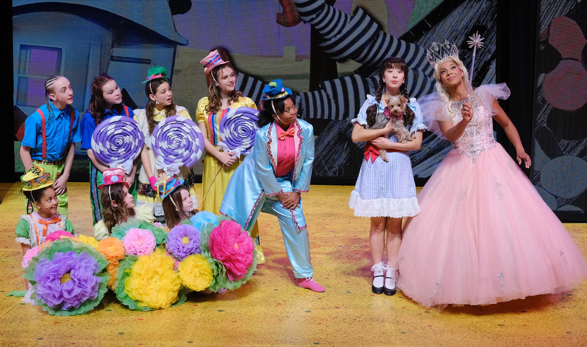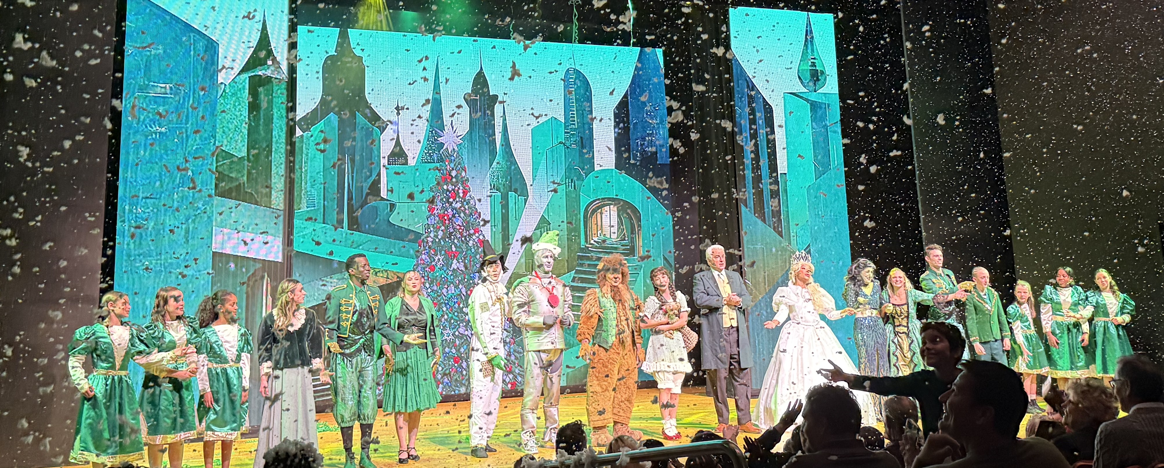 It’s yet another fabulous “panto” from Kris and Becky Lythgoe. (He wrote it and she directed it—what a couple!) I’ve seen almost all of their pantos through the years, (this was my ninth one!,) but I hadn’t been to one since before the pandemic, so, of course, I haven’t told you about them for that long, which means it’s now time for a refresher course in the concept. A “panto” is a tradition from England, which is usually performed around the holidays. Each show is based on a well-known fairy tale or other kind of popular classic story, (such as The Wizard of Oz of this one,) but it’s not the exact story. It includes many elements, including singing, dancing, a very colorful basic set, modern popular songs, clever and somewhat silly references, (in this case, to old sitcoms,) and lots of audience participation—we all love loudly booing the villain. And if done right, as it always is with the Lythgoes, it’s tons of fun.